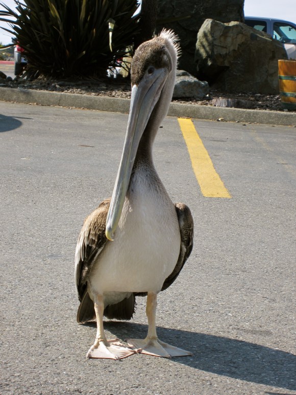 Here was my pelican friend we said goodbye to in Bandon.  He refused to move from the parking lot, poor guy.  He had to be at least three feet tall and had an audience of onlookers.