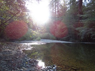 We stayed at the cutest little cabin up in the redwoods in Cazadero.  The location was gorgeous, beneath towering thousand year-old trees, adjacent to a beautiful clear creek, only 25 minutes from the crashing surf in Jenner.  One of the highlights for me, was sitting underneath the stars, staring up at the nearly-full moon through the sky-high redwoods.  We also discovered the quirky little town of Guerneville, full of good food, locally crafted beer, and an unusually high concentration of gay men, (whose overheard stories undoubtedly added to our entertainment).